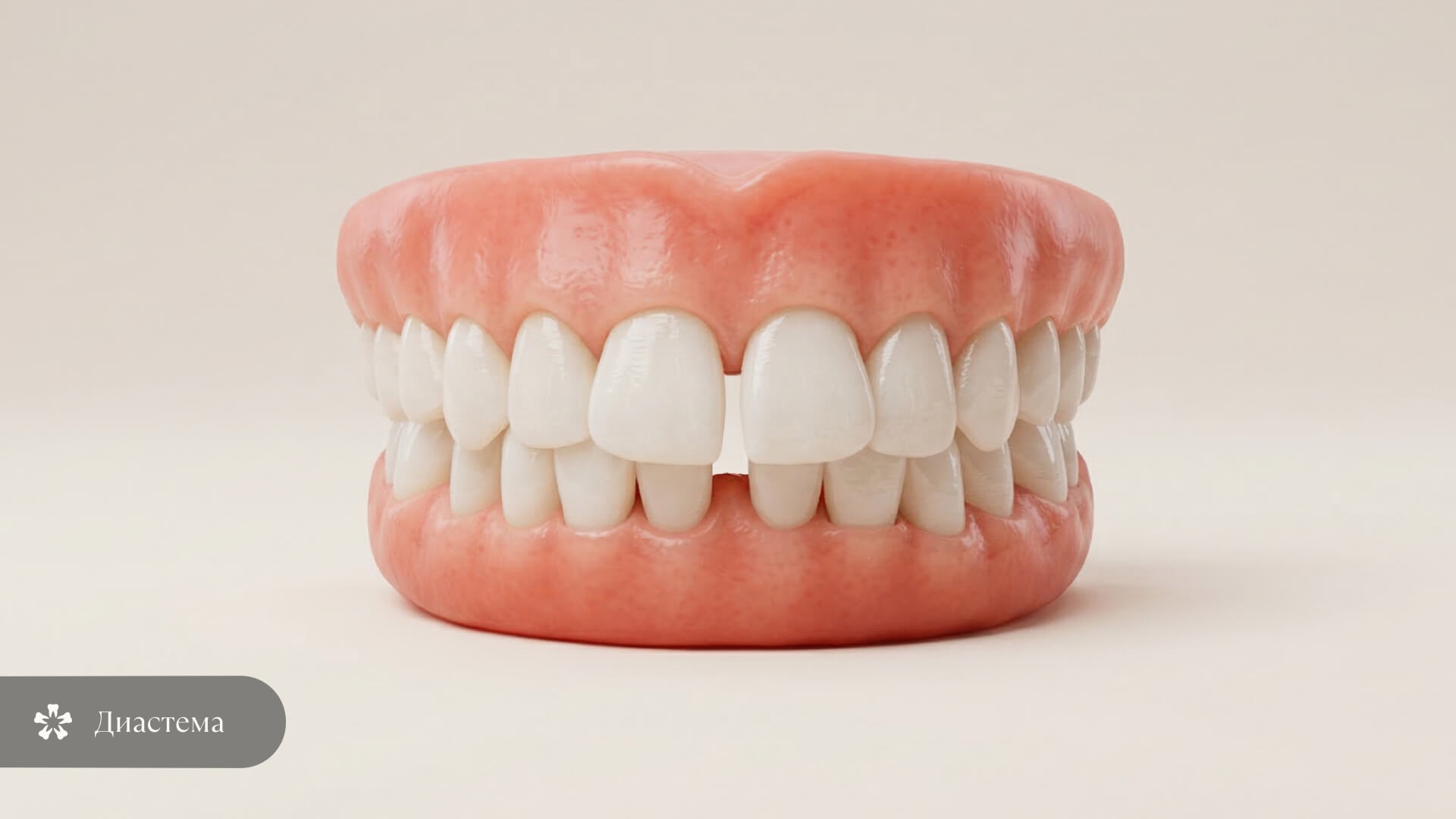 Стоматологический контекст. Диастема может сочетаться с другими особенностями зубочелюстной системы (положением, размерами и формой). Поэтому щель между зубами иногда рассматривают как симптом или часть более общей проблемы, которую важно оценить на осмотре.