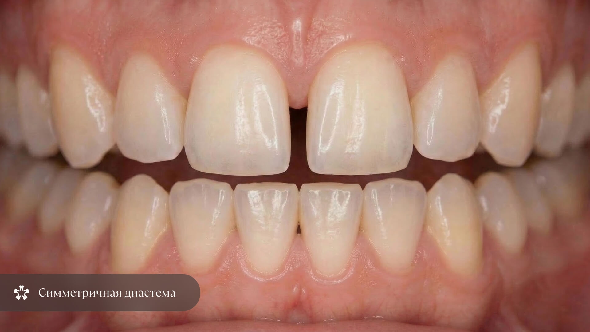 Стоматологический контекст. Диастема может сочетаться с другими особенностями зубочелюстной системы (положением, размерами и формой). Поэтому щель между зубами иногда рассматривают как симптом или часть более общей проблемы, которую важно оценить на осмотре.