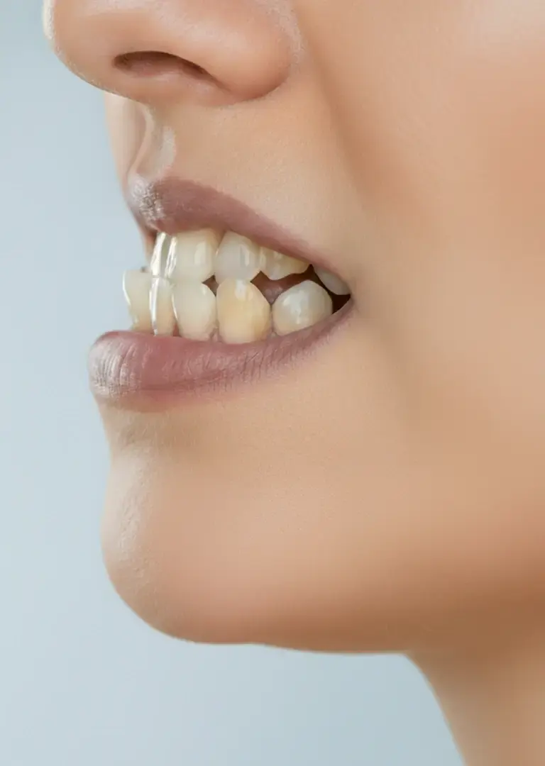 У взрослых костная структура не меняется так, как в период роста, поэтому основное влияние на профиль оказывает положение зубов и их смыкание. После успешной коррекции мезиального прикуса часто улучшается визуальный баланс в области губ и подбородка за счет изменения опоры мягких тканей. Спланировать относительную степень изменений можно заранее — по фотографиям, 3D-модели и плану перемещений.